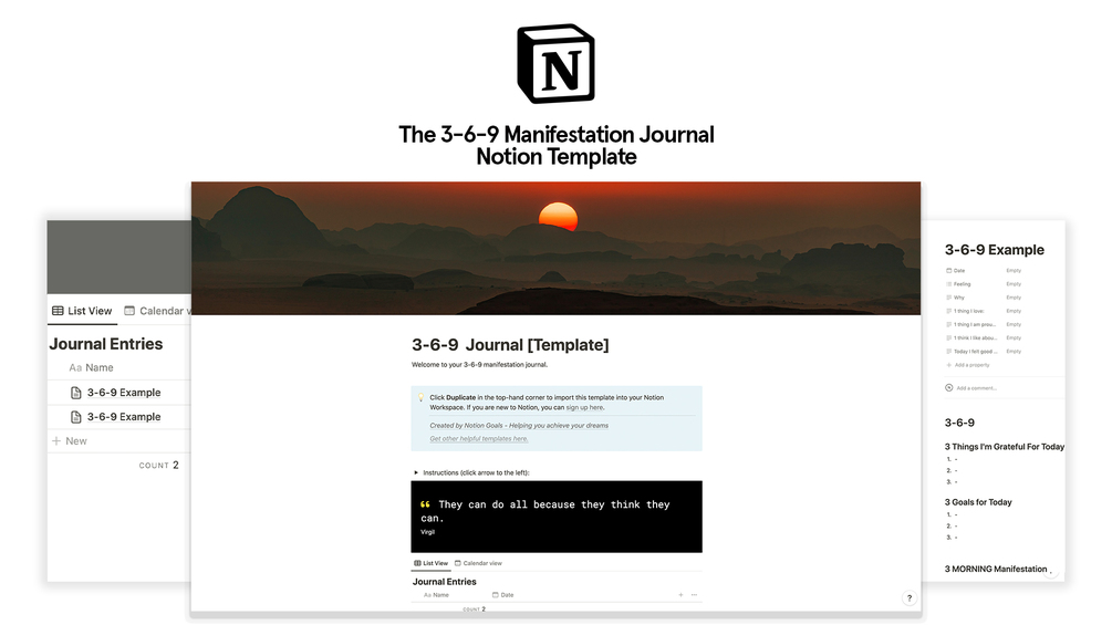 Introducing "The 3-6-9 Journal": A Notion Template for Manifesting Your Dreams.